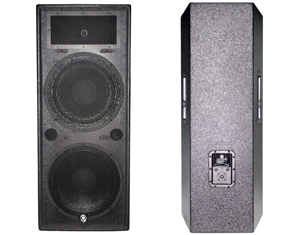 Enclosure Construction Plywood cabinet, resistant black paint, metal grille, rubber feet, two handles